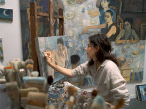 Nathanaëlle Herbelin grew up in a small village in central Israel between a French father and an Israeli mother. It was in Tel Aviv that she learned painting, alongside Russian and Ukrainian artists who arrived there in the 1990s. From this land, she keeps her taste of the desert, silence and culture of the Negev Bedouins, as well as a close link with nature. Her work as a whole is underpinned by a contrast between a great tension and a certain sweetness. And her melancholy does not exclude, here and there, traits of humor and a certain lightness.