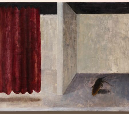 A few years ago, Nathanaëlle Herbelin was questioning the possible connection between her painting and photography. Today, that questioning has given way to new paradoxes and new ambiguities. She is hunting petty, commonplace episodes in reality. Once found, she examines them on the surface of her paintings in a mixture of mundanity and poetic transcendence, which is usually encapsulated in a dash of faintwit. Her most realistic pictures are the most ambiguous, for example the large interior inspired by Georges Perec’s Les Choses, which is also the library in an apartment lent by a painter friend. It expresses her fascination with the idea of one’s own house, somewhere between tangible presence and fictional world.