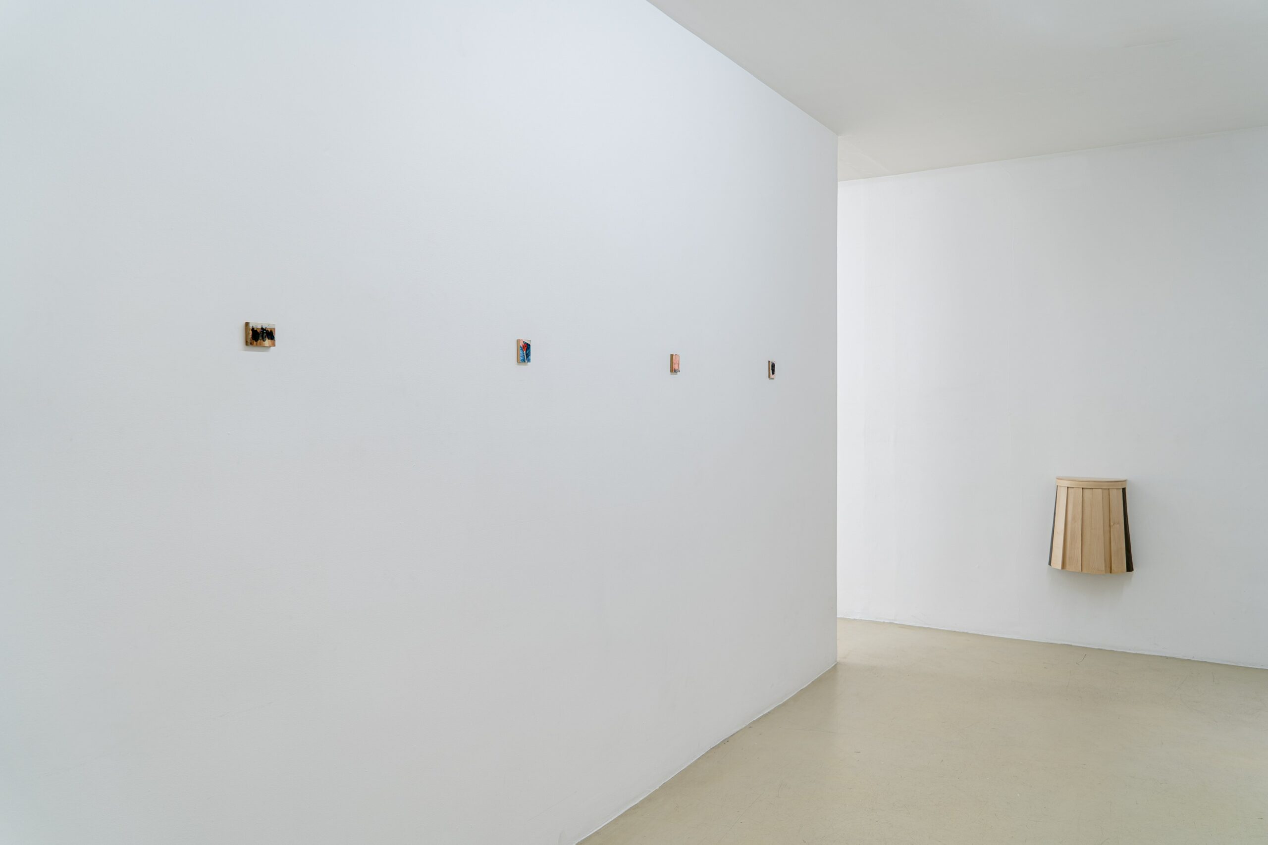 In addition, and not as a parallel activity, Marion Chaillou creates works on wood sometimes used for her paintings. These can adopt the form or be similar to interior furniture. The artist reveals how the furniture that fills our domestic spaces can form discussions based on whether or not gestures, contact and information are shared, dictating gendered dynamics or power relations.