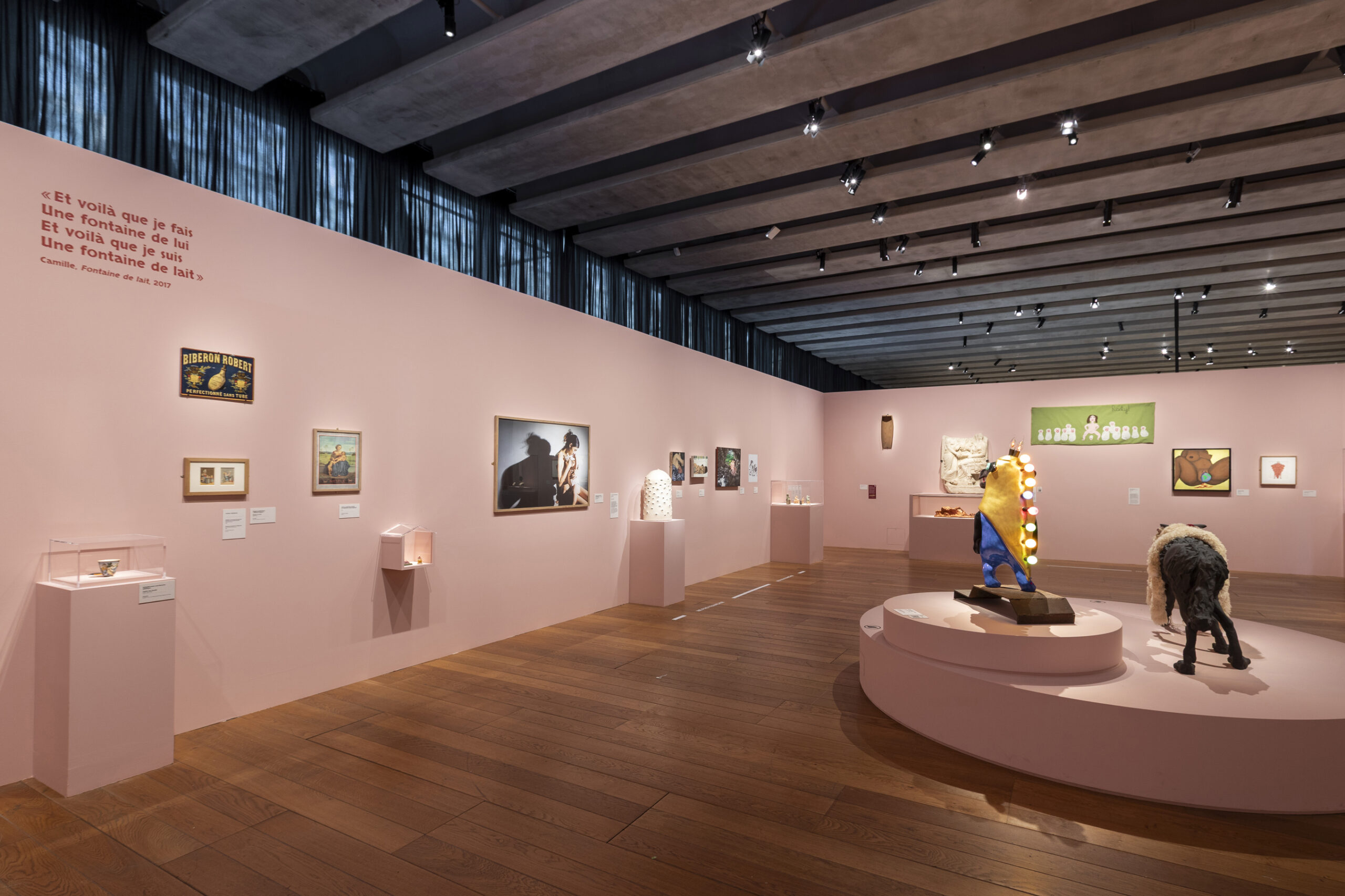 The scenography is immersive and radiant, guiding visitors along a sensitive pathway structured in three sections. “Bonnes Mères” opens with the imaginaries associated with traditional maternal figures, often idealized and fantasized. It then turns to their complex and singular realities, at times invisible, bringing to light intimate experiences frequently left unspoken—such as perinatal grief or pregnancy termination.