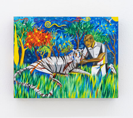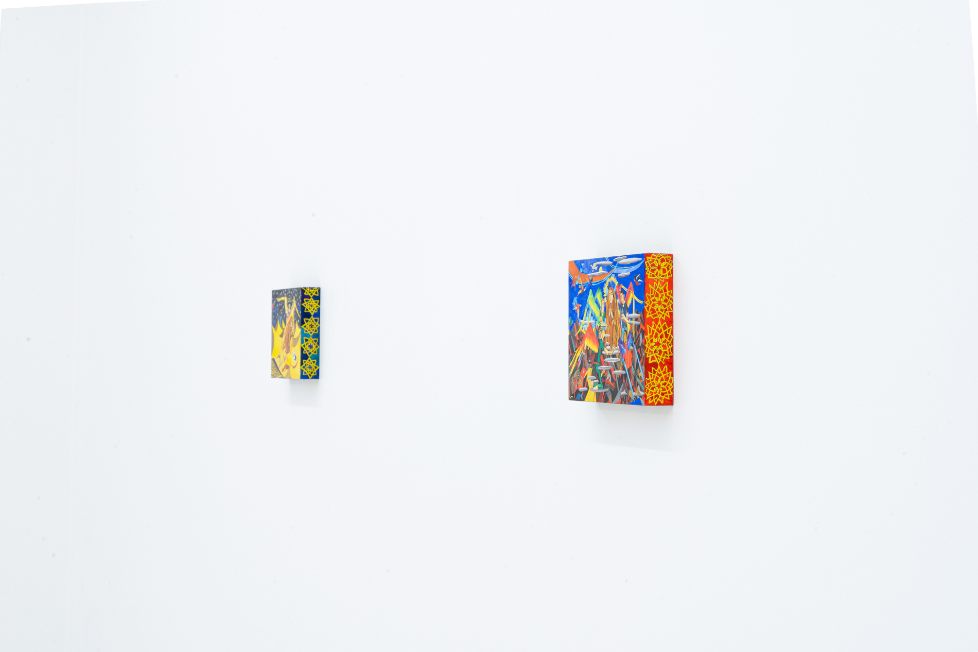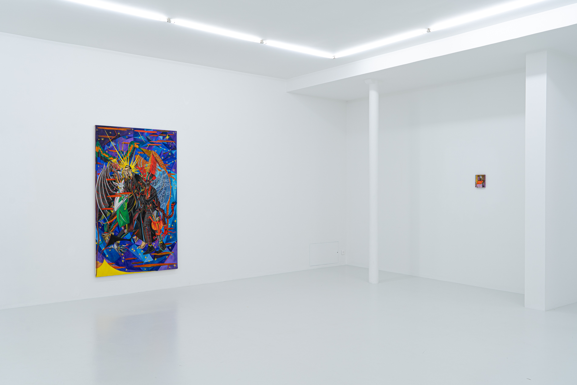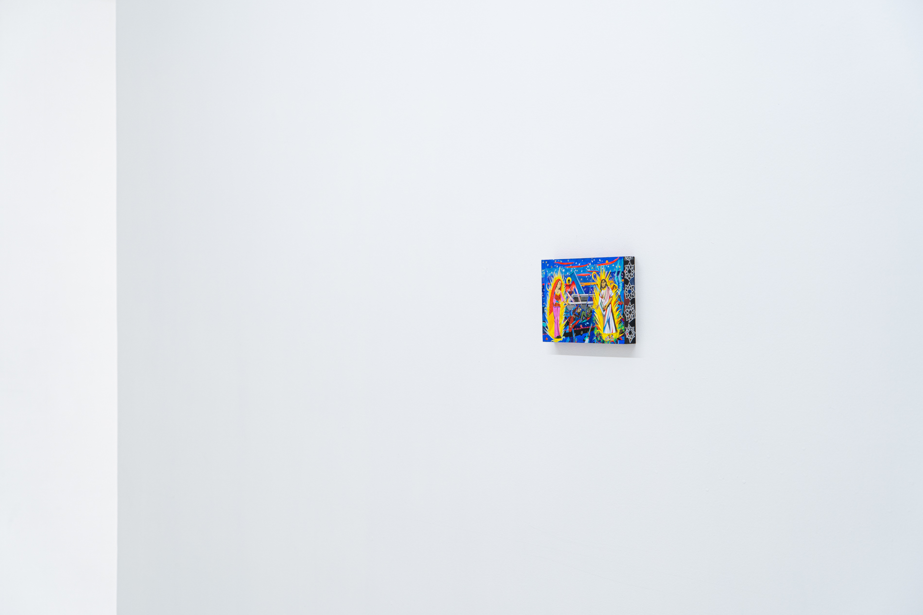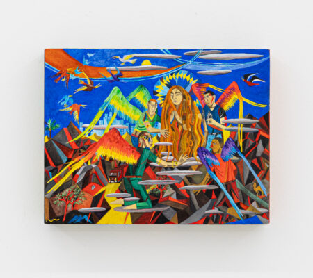 Most of the paintings gathered here are small in scale. They invite proximity: an intimate, almost tactile encounter, a kind of bodily engagement. Like an illuminated manuscript that one opens, closes, and returns to, they encourage meditation – the slow rumination of the image. One approaches, observing the cut surfaces of flat colour, the certainty and doubt in the faces, the iconographic attributes resurfacing from the past. One steps back, recognises a narrative, a memory and plunges into a dense symbolism, whether familiar or unknown. When one moves away from these paintings and then returns to them later, something has shifted – within them or perhaps within ourselves (it is no longer entirely clear).