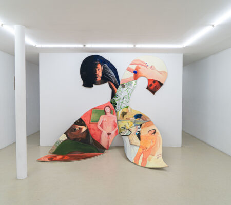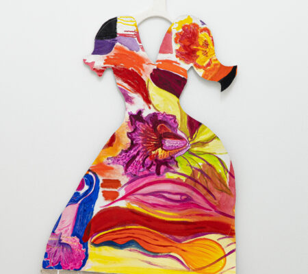 Dans ses œuvres, elle mêle peinture, sculpture et installation, en malmenant le cadre traditionnel du tableau : elle découpe, colle, assemble, peint à même les murs ou sur bois, jouant avec les conventions picturales pour mieux en révéler les tensions souterraines. Sa pratique se nourrit d’un imaginaire sensuel, de références à la culture populaire, de mots inscrits dans la matière, et d’une attention constante au corps, à ses absences, ses métamorphoses, ses pulsions contradictoires.