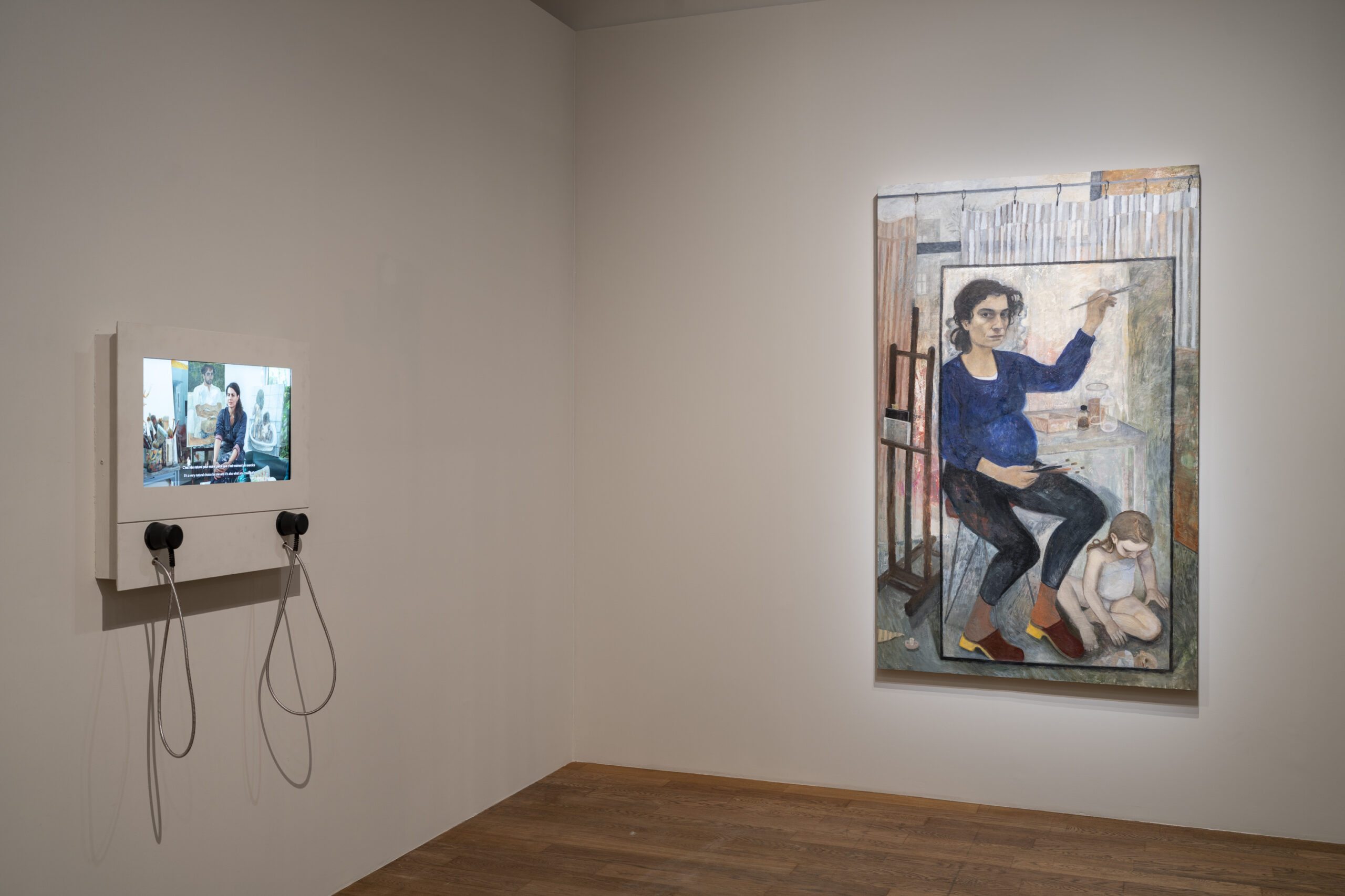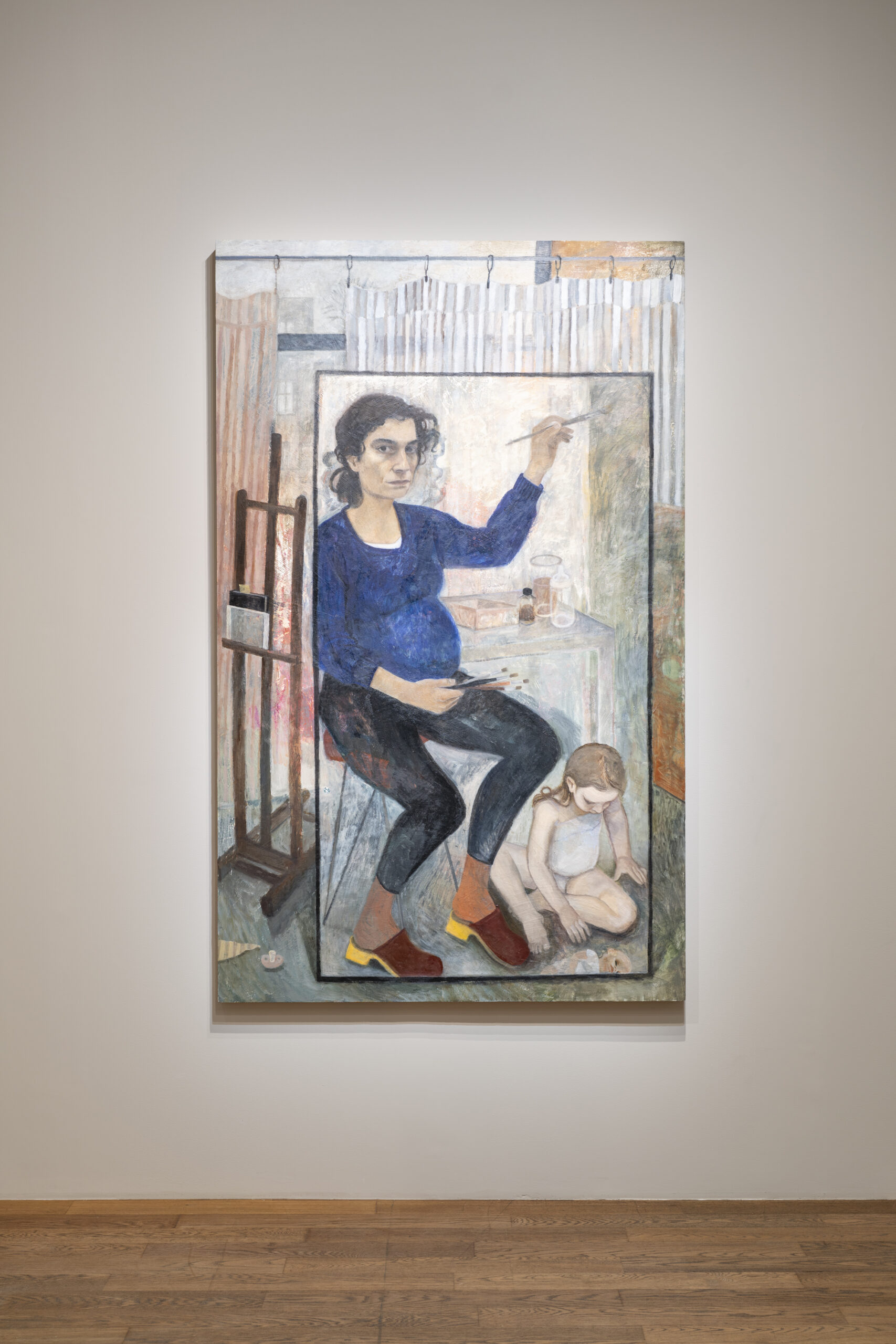 Image : Nathanaëlle Herbelin, Manifestation pour une 2ème grossesse, 2025-2026, huile sur bois, 200 x 123 cm
