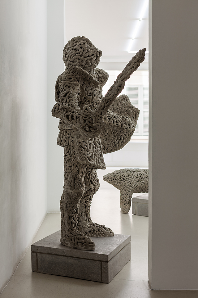 Matthew Darbyshire, Xerox No.17 – Knight in Armor, 2017, béton extrudé et structure en acier, 150 x 60 x 40 cm